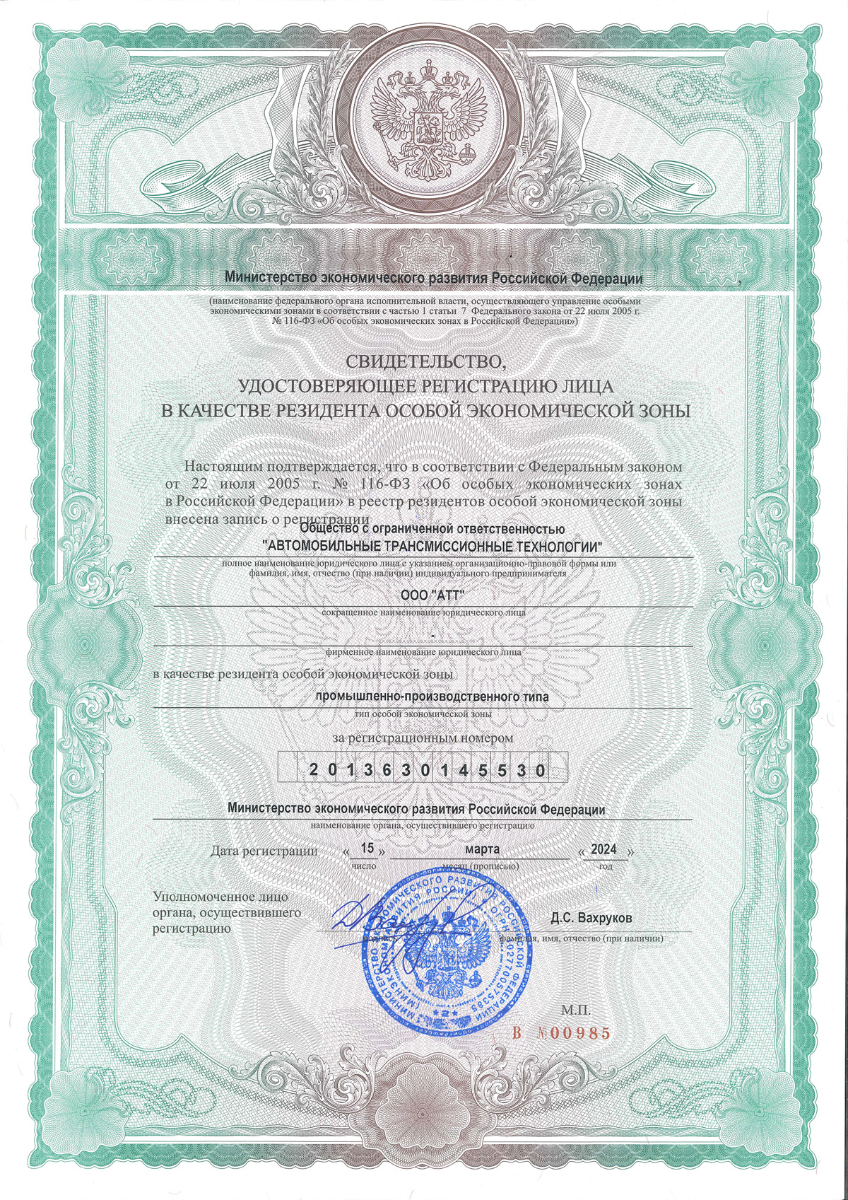 Завод «Автомобильные трансмиссионные технологии» является резидентом производственно-промышленного типа Особой экономической зоны Тольятти.